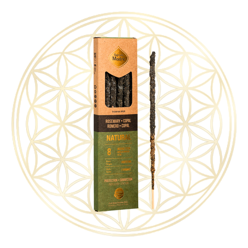 As fragrâncias de copal e alecrim interagem entre si e criam uma sinergia harmoniosa. O copal limpa o éter, e o alecrim o harmoniza.