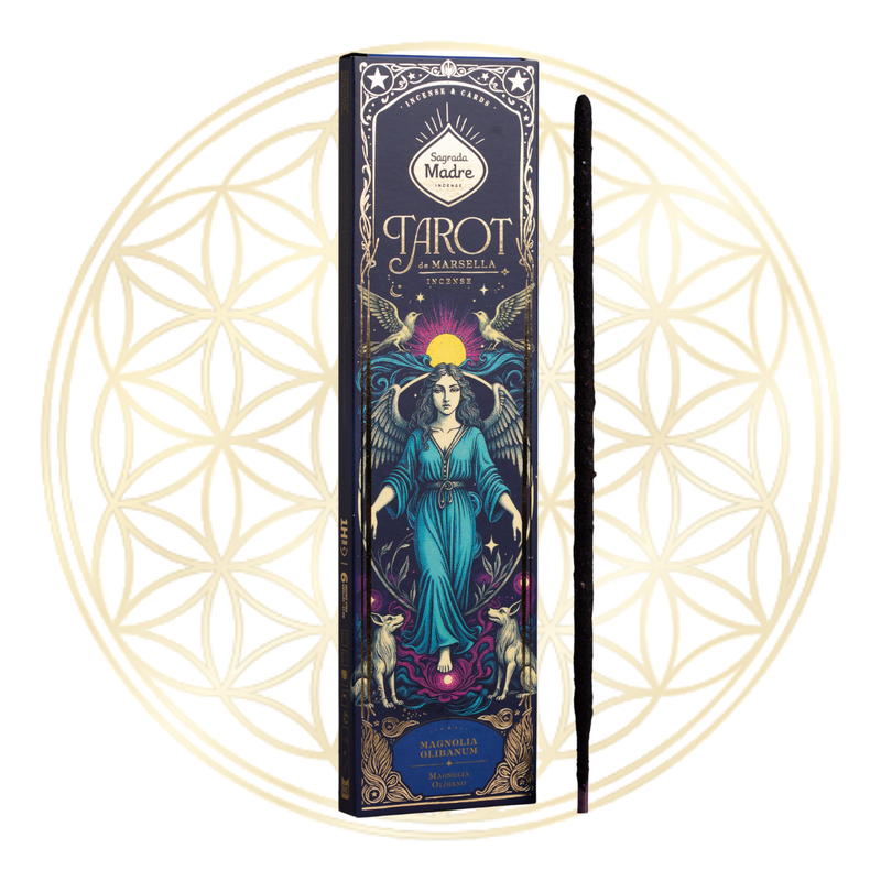 Edição de colecionador de incenso aromático da linha Tarot de Marselha. É uma coleção que respira mistério, arquétipos universais e a força do Olibanum (Incenso de Olíbano), que é a base de todas as fragrâncias desta série. Cada caixa inclui uma fragrância exclusiva e duas cartas recortadas aleatoriamente, selecionadas entre os 22 Arcanos Maiores do Tarot.