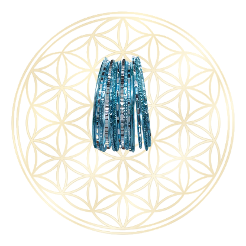 Conjunto com 7 Pulseiras Indiana Tradicional, de alumínio pintado (várias cores), super leves e não escurecem, brilho em glitter que pode ir soltando de acordo com o uso.